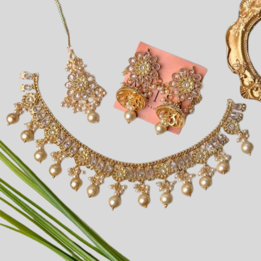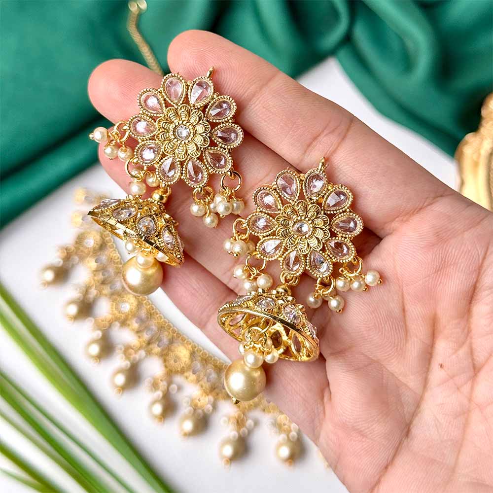 • Brass based, resin plated set enhanced with crystal zirconium stones and golden beads.